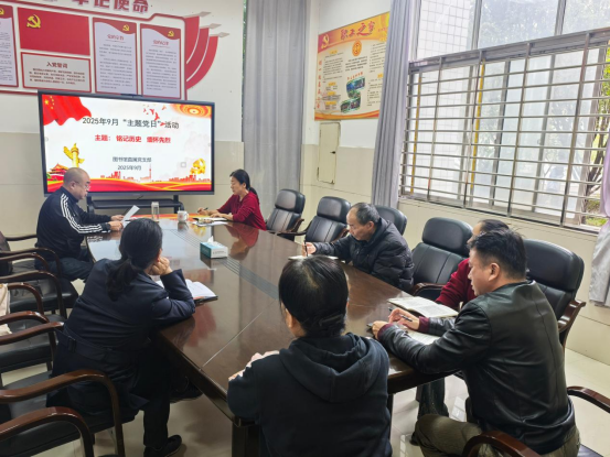 9月26日下午,图书馆直属党支部在一楼会议室组织召开“铭记历史 缅怀先烈”九月主题党日活动,全体党员参加。