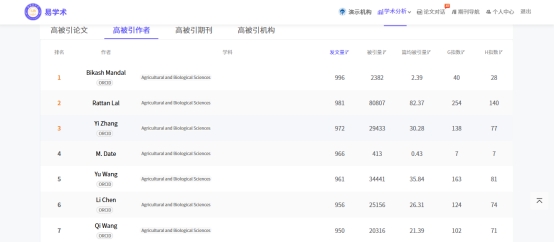 学术榜单:论文、期刊、作者和机构高被引榜单