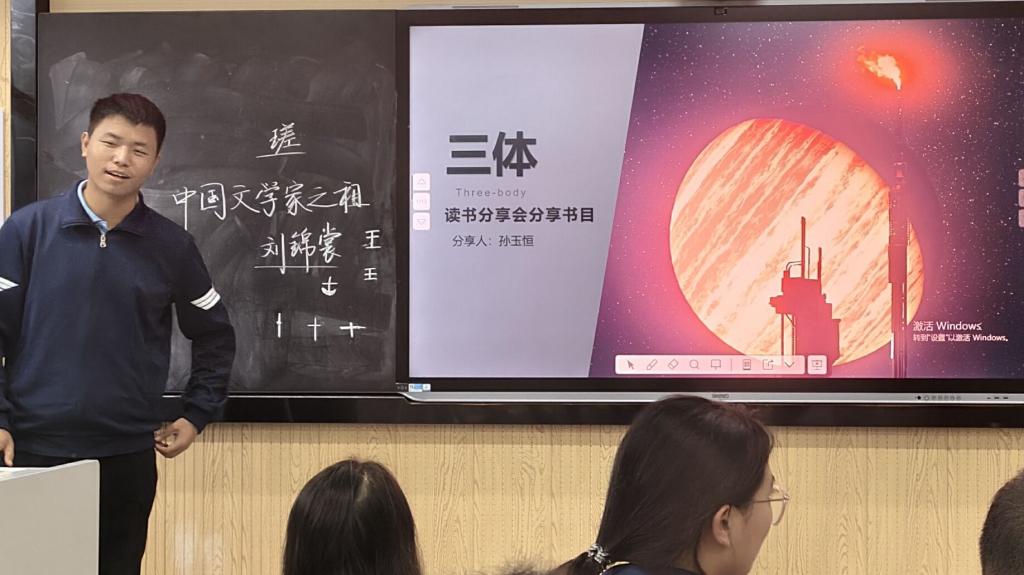 读书分享环节,信息技术学院的孙玉恒和吴宝腾两位同学分别分享了《三体》,《飘》的阅读感悟。