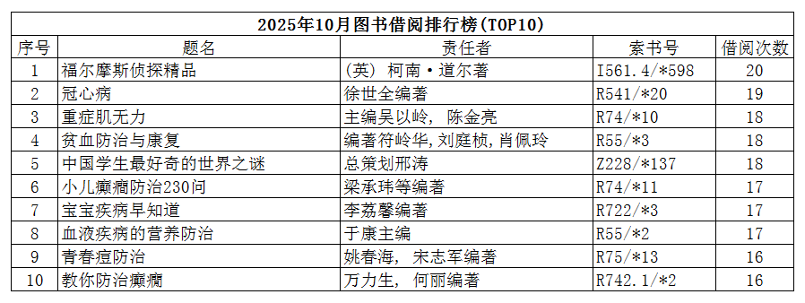 上一条:2025年10月读者借阅排行榜(TOP10)