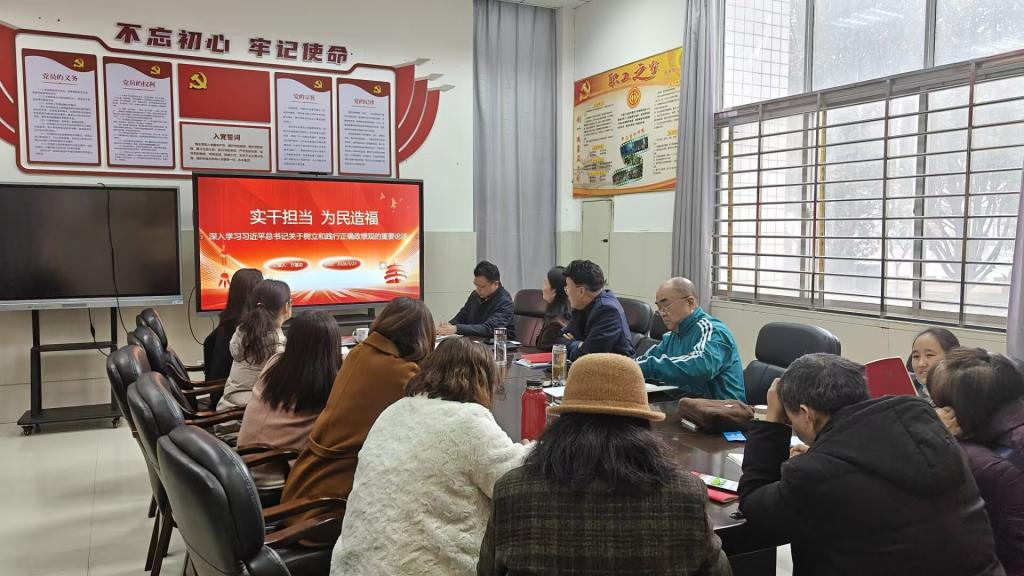 3月23日下午,图书馆党支部在会议室组织召开“树牢正确政绩观 实干担当促发展”三月主题党日活动。活动由党支部书记方基志主持,全体党员参加。