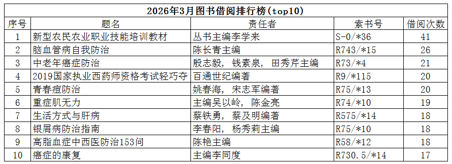 下一条:2026年3月读者借阅排行榜(TOP10)
