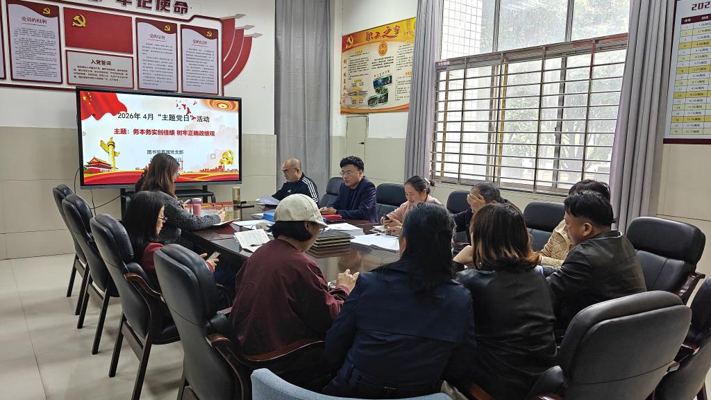 4月20日下午,图书馆直属党支部在会议室组织召开“务本务实创佳绩 树牢正确政绩观”四月主题党日活动。活动由党支部书记方基志主持,全体党员参加。